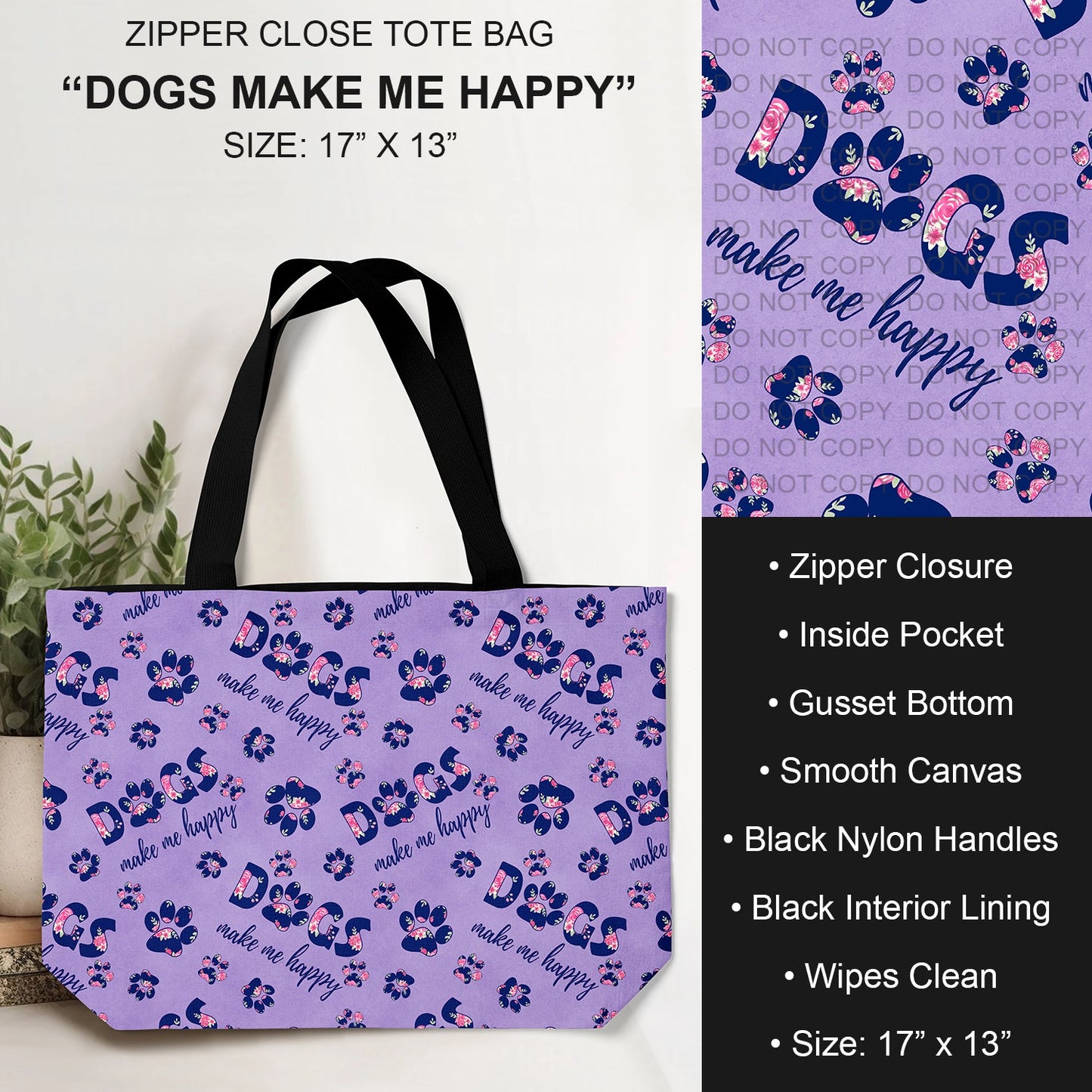 B232 - Preorder Dogs Make Me Happy Tote Bag (Closes 6/04. ETA: late July)