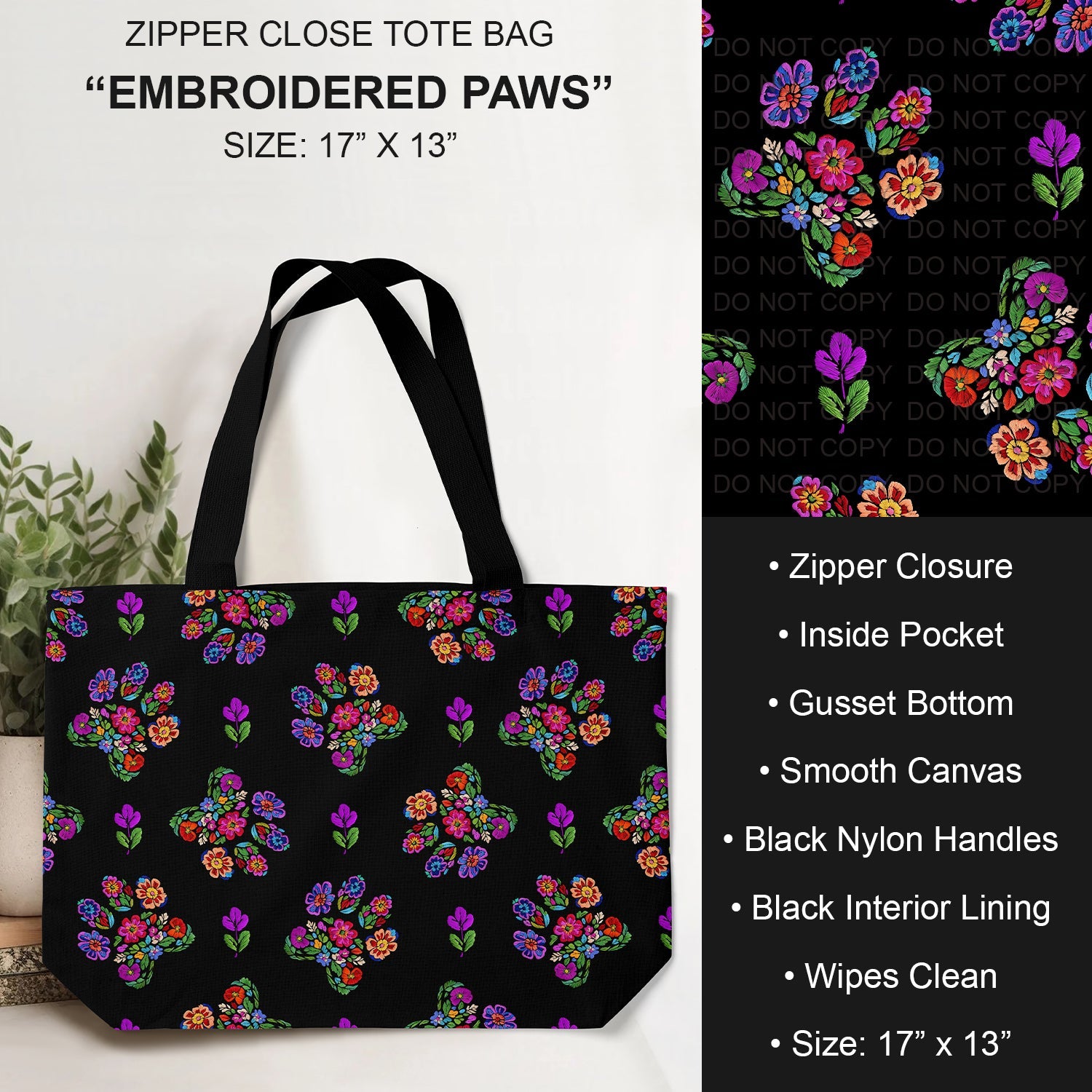 B232 - Preorder Embroidered Paws Tote Bag (Closes 6/04. ETA: late July)