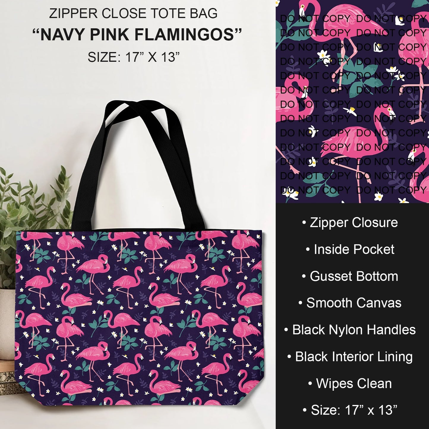 B232 - Preorder Navy Pink Flamingos Tote Bag (Closes 6/04. ETA: late July)