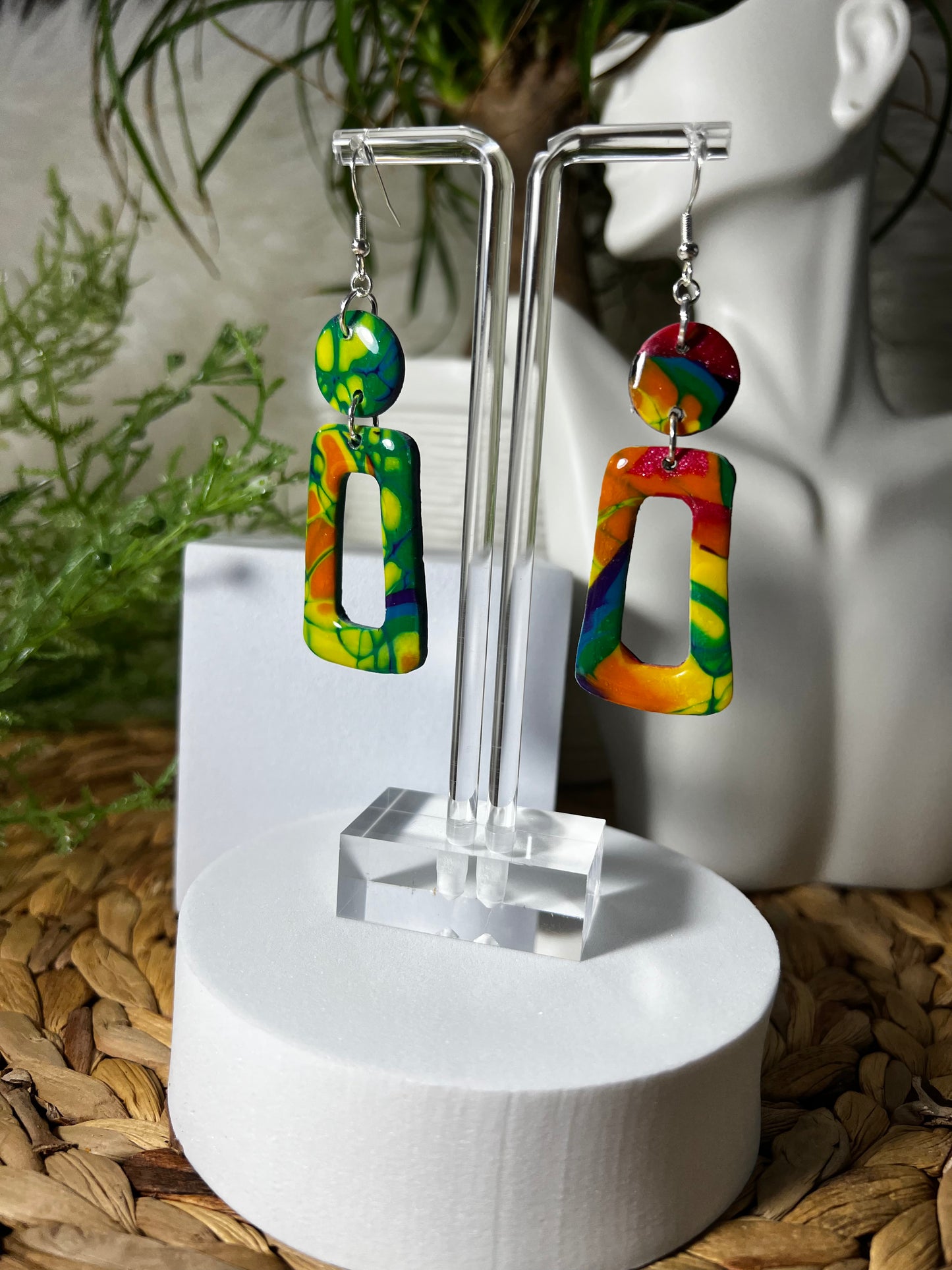 These are handmade out of polymer clay and are on .925 sterling silver ear wires.