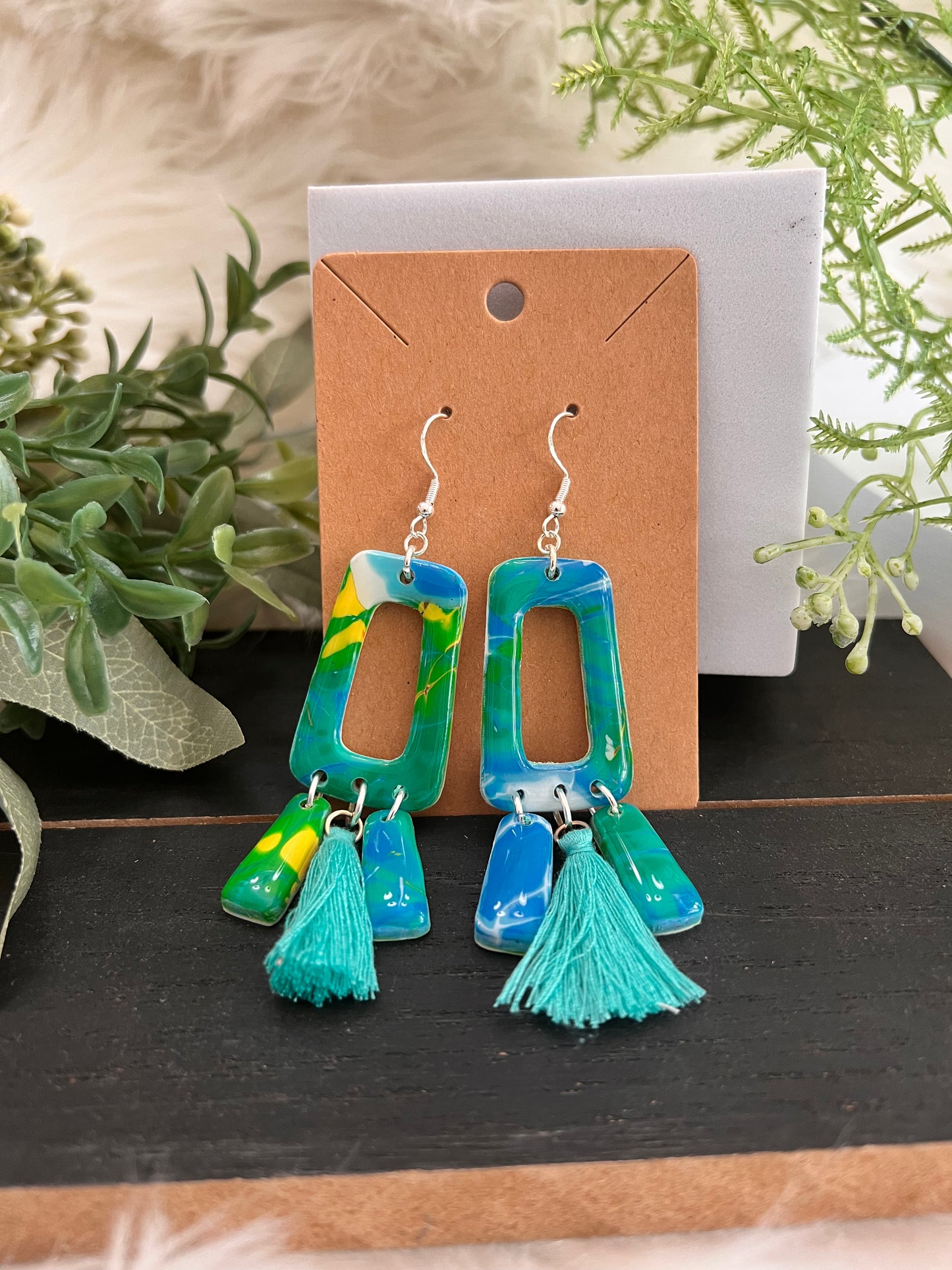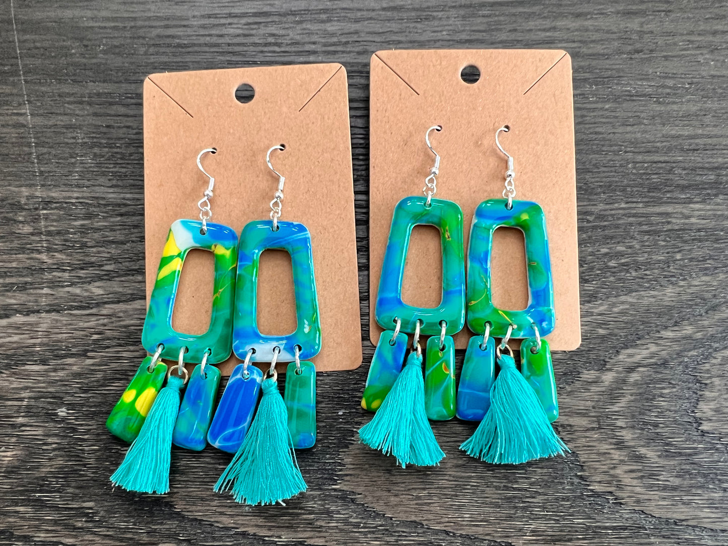 Mokume Gane Tassle Hook Earrings- Ocean- Color Way 4