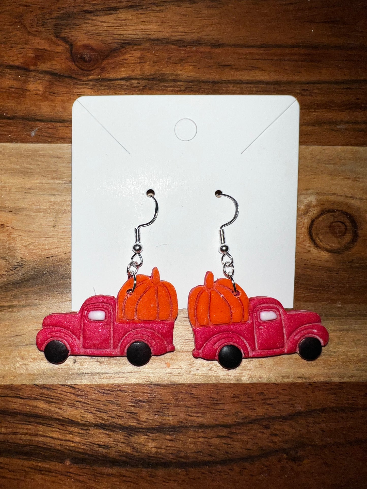 Red Pumpkin Farm Truck- single layer- Hook Earring