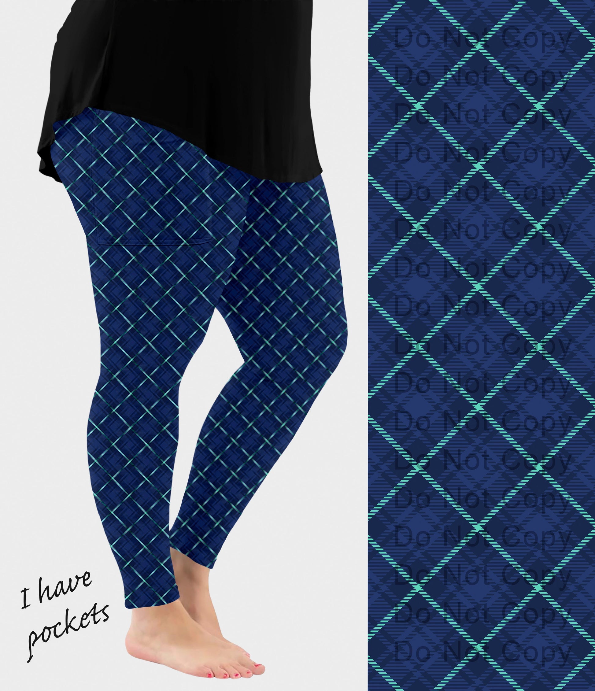 RTS - Blue Diagonal Plaid Leggings w/ Pockets