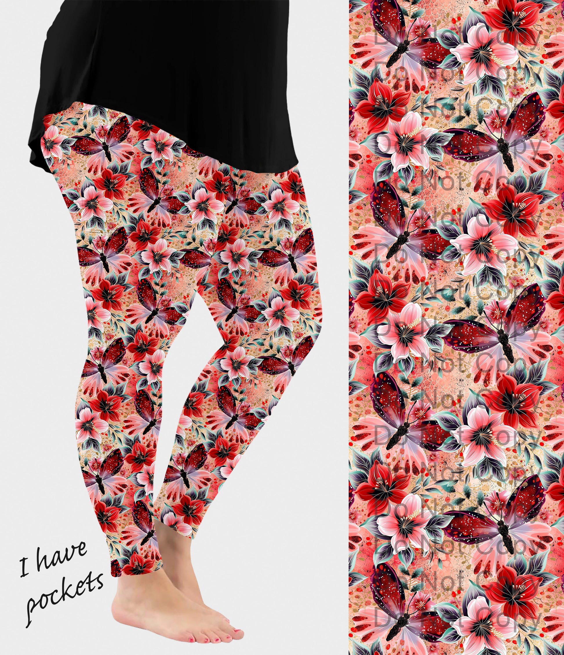 RTS - Red Butterfly Leggings w/ Pockets