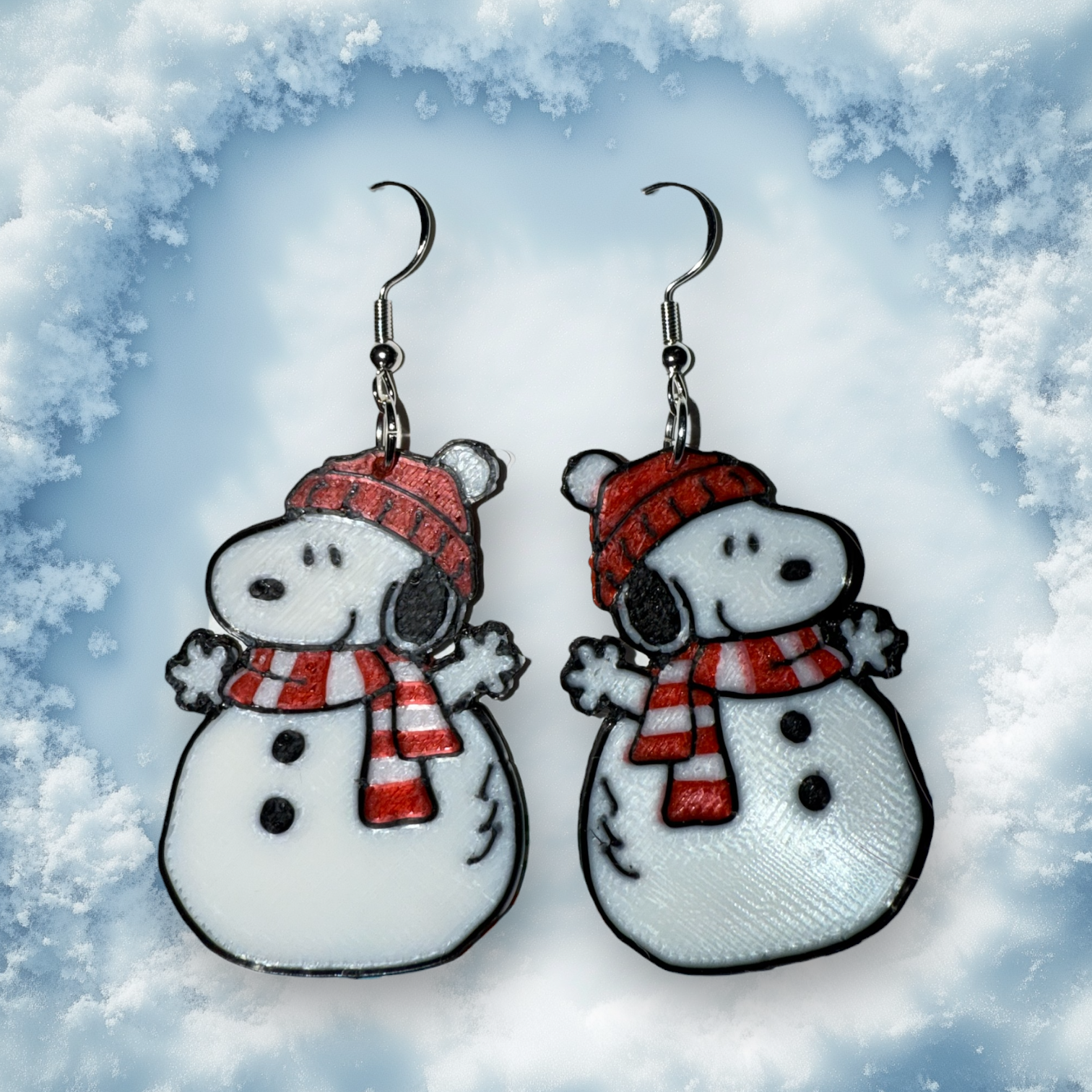 Snowman Beagle- 3D Printed Earrings